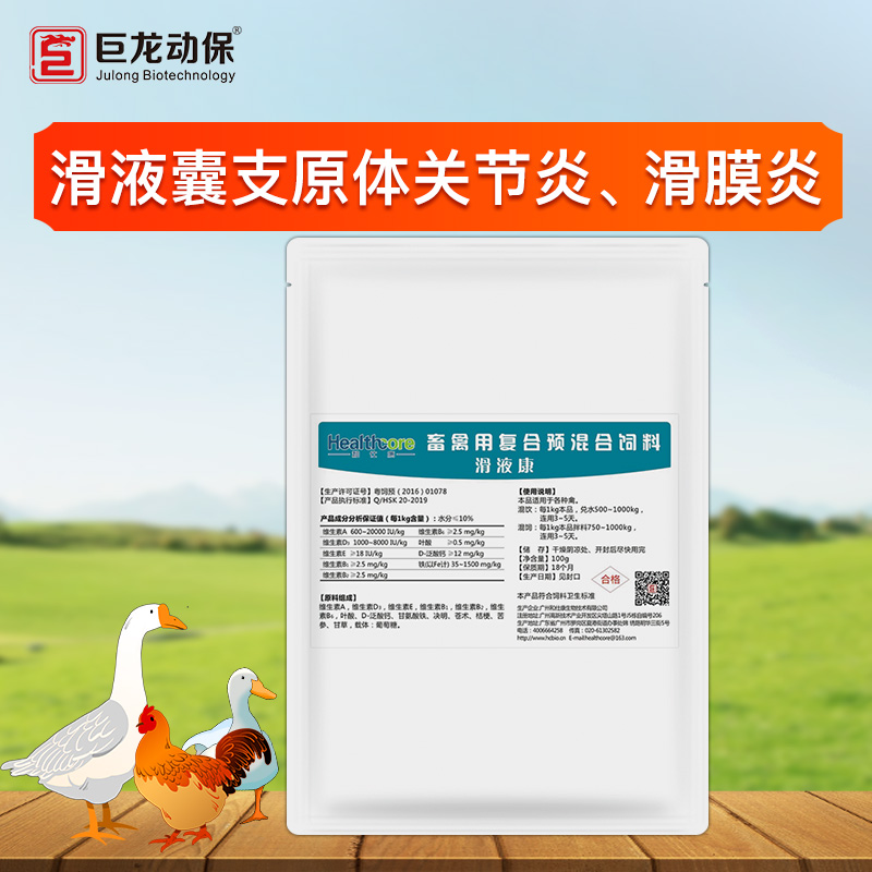 禽用滑液囊支原體引起的關(guān)節(jié)炎病毒性關(guān)節(jié)炎滑膜炎腱鞘炎哈伯德腿癱-滑液康100g/袋